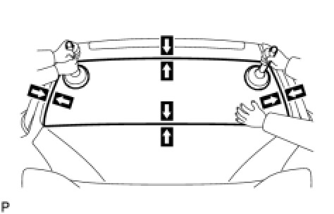 (1) Using a suction cup, position the glass so that the reference marks are aligned, and press it in gently along the rim.