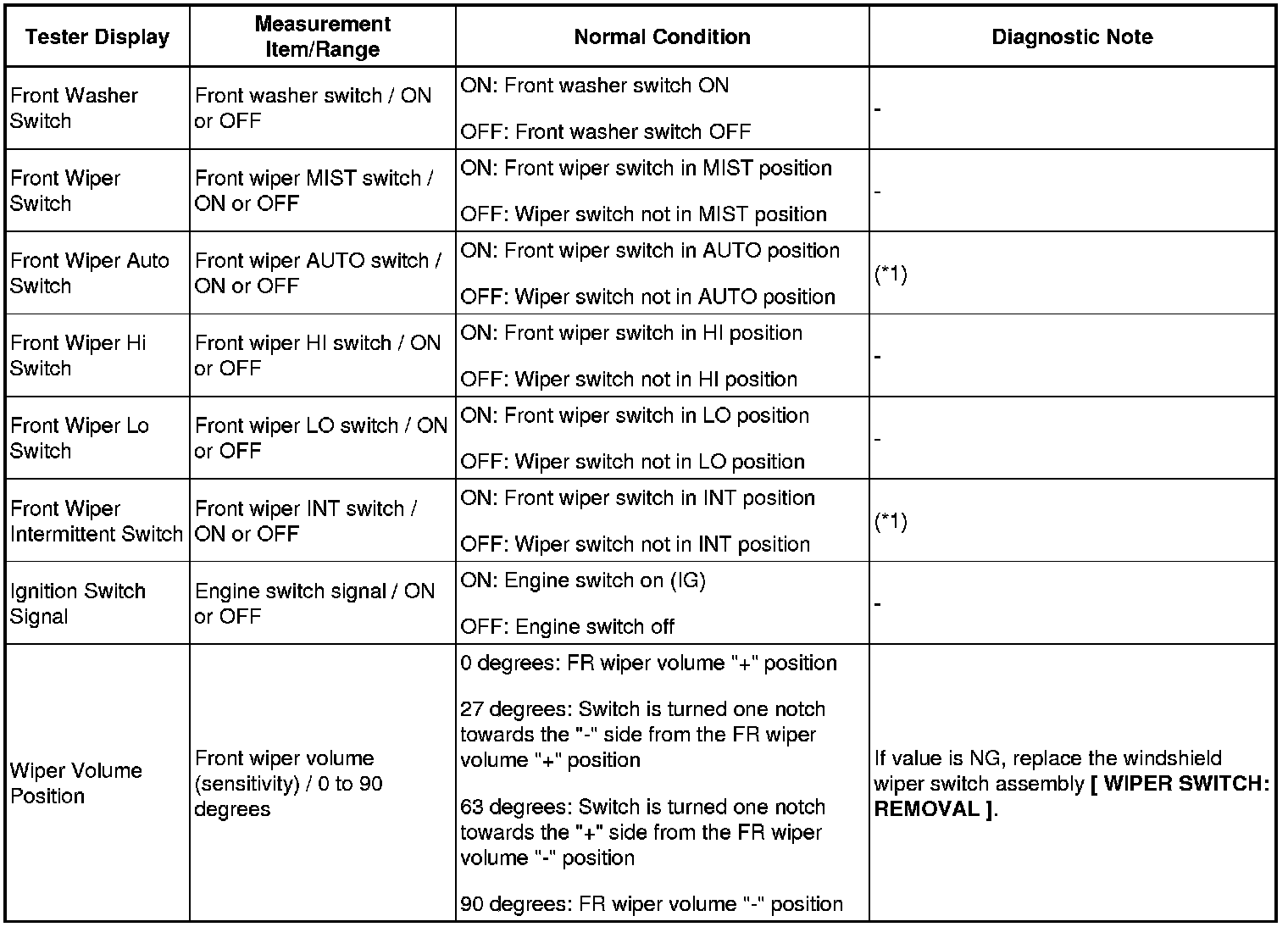 WIPER AND WASHER SYSTEM: DATA LIST / ACTIVE TEST