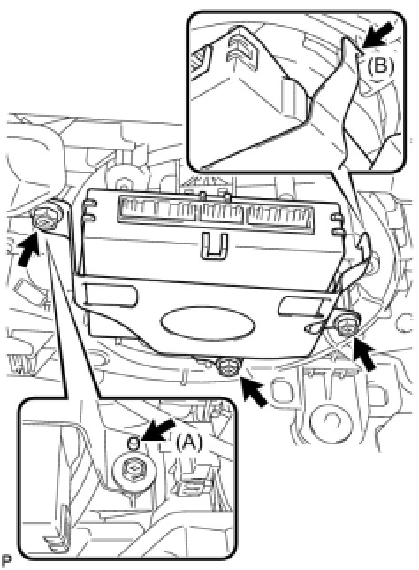 - Securely engage the hook (B) of the skid control ECU with the blower assembly.
