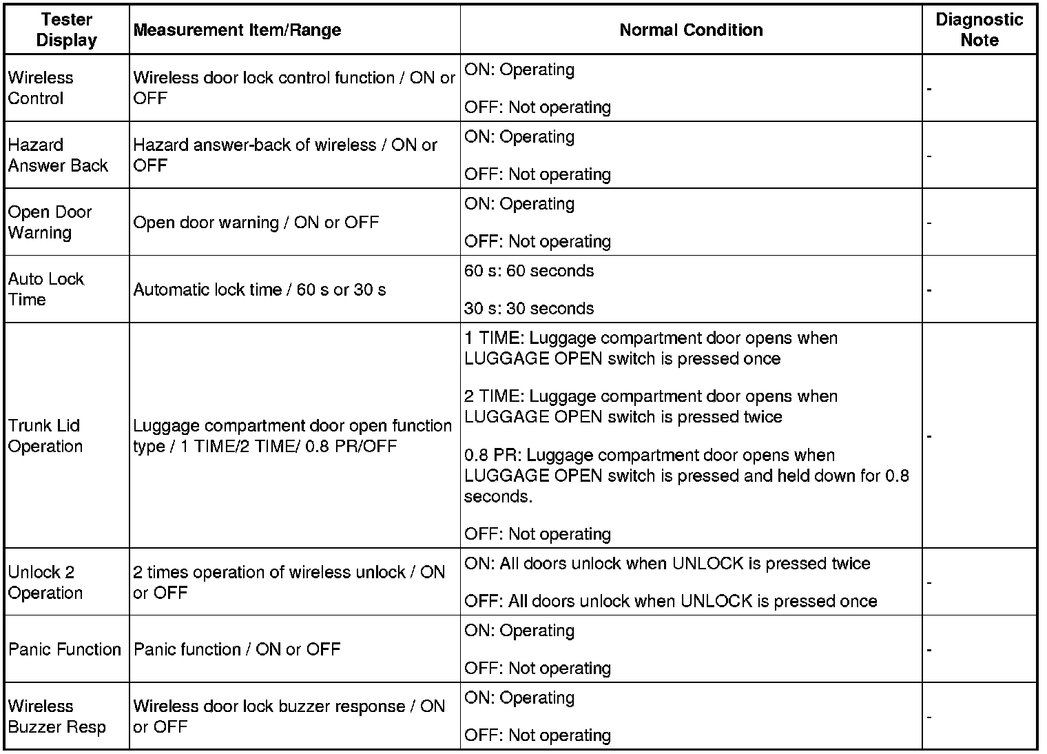 DOOR LOCK: WIRELESS DOOR LOCK CONTROL SYSTEM: DATA LIST / ACTIVE TEST