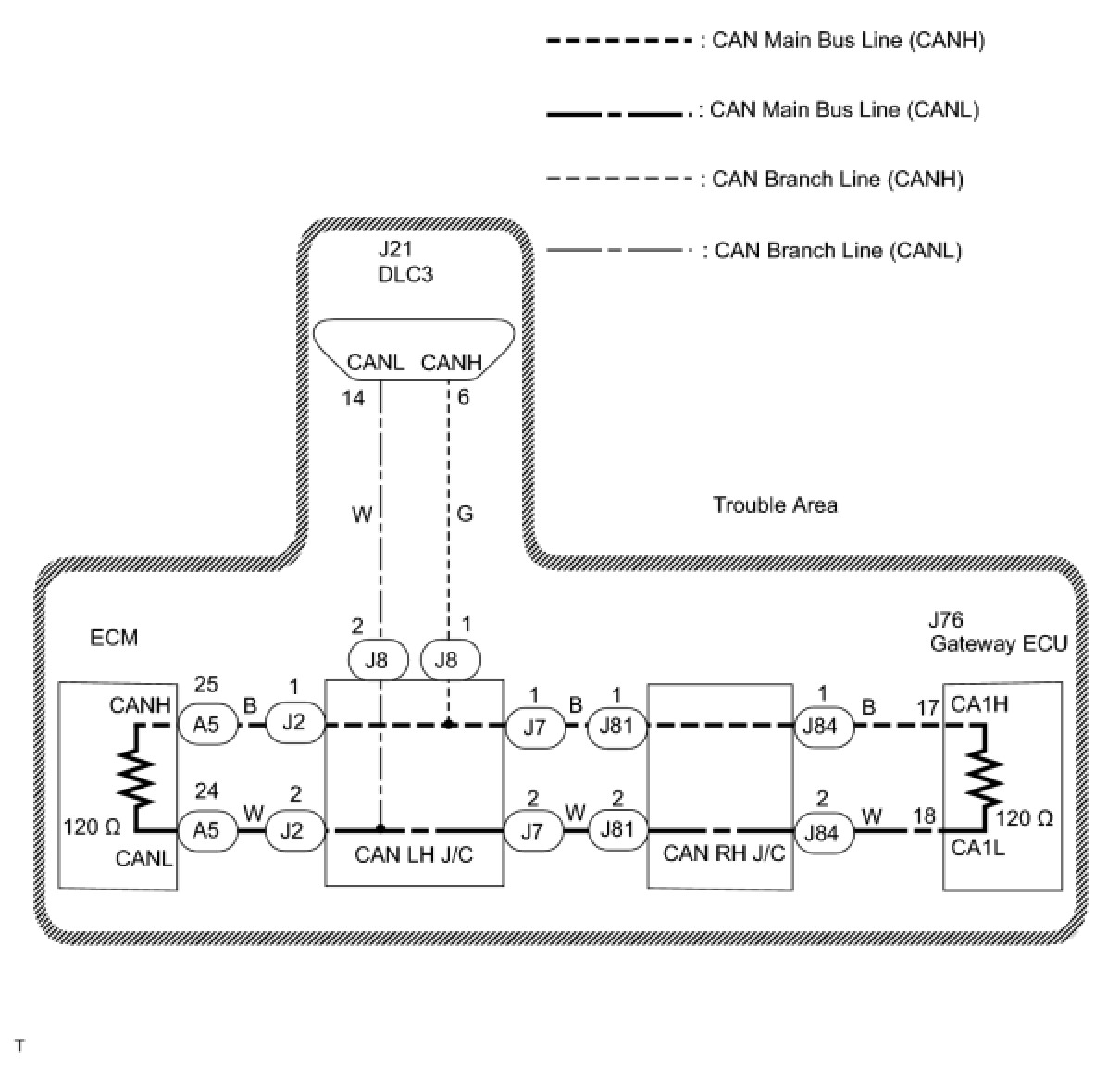 B -- CHECK FOR OPEN IN CAN BUS MAIN WIRE (GATEWAY ECU - CAN LH J/C)