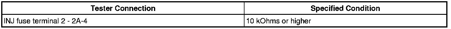 (1) Remove the INJ fuse. Using an ohmmeter, measure the resistance between the terminals.