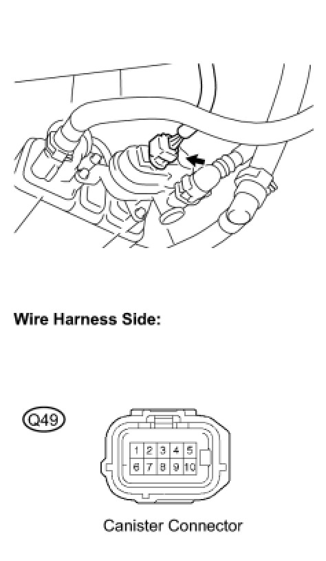 (b) Disconnect the Q49 canister pump module connector.