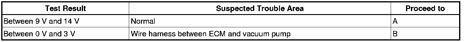 (b) Measure the voltage between MPMP terminal of ECM connector and body ground when the vacuum pump is turned ON and OFF using the tester.