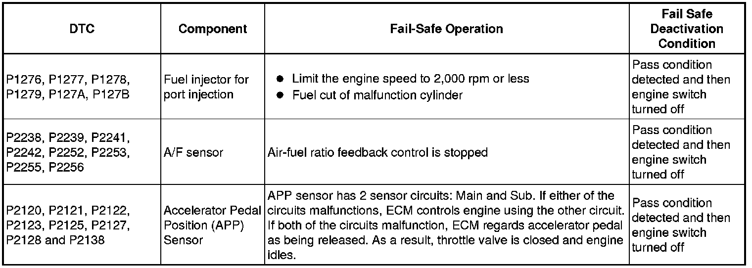 2GR-FSE ENGINE CONTROL SYSTEM: SFI SYSTEM: FAIL-SAFE CHART