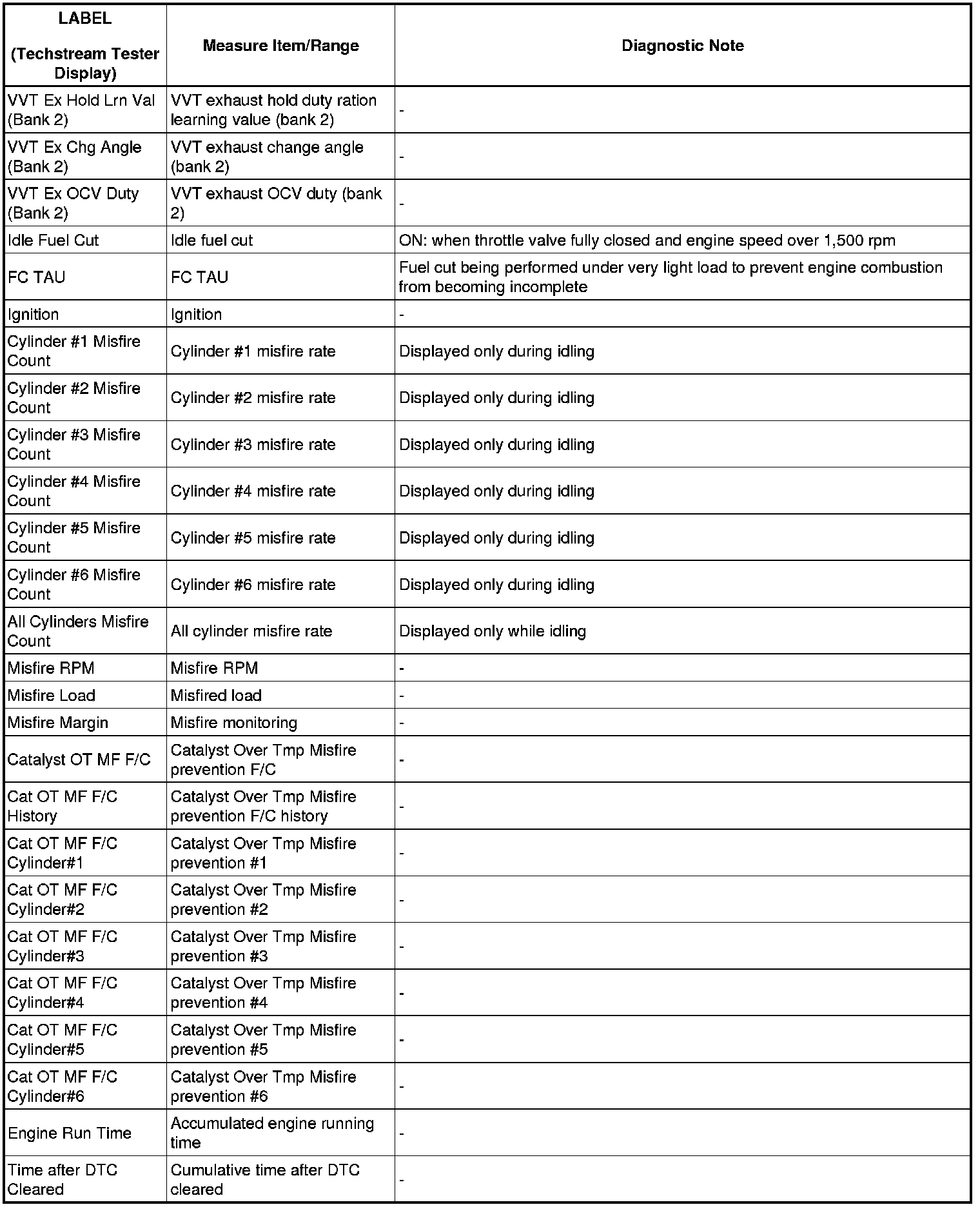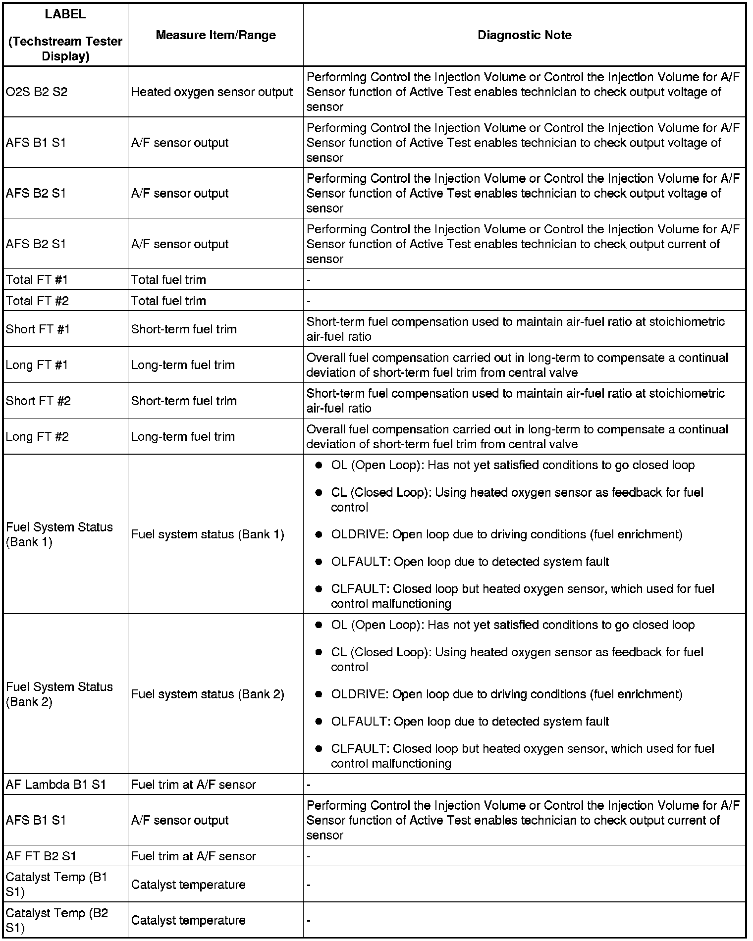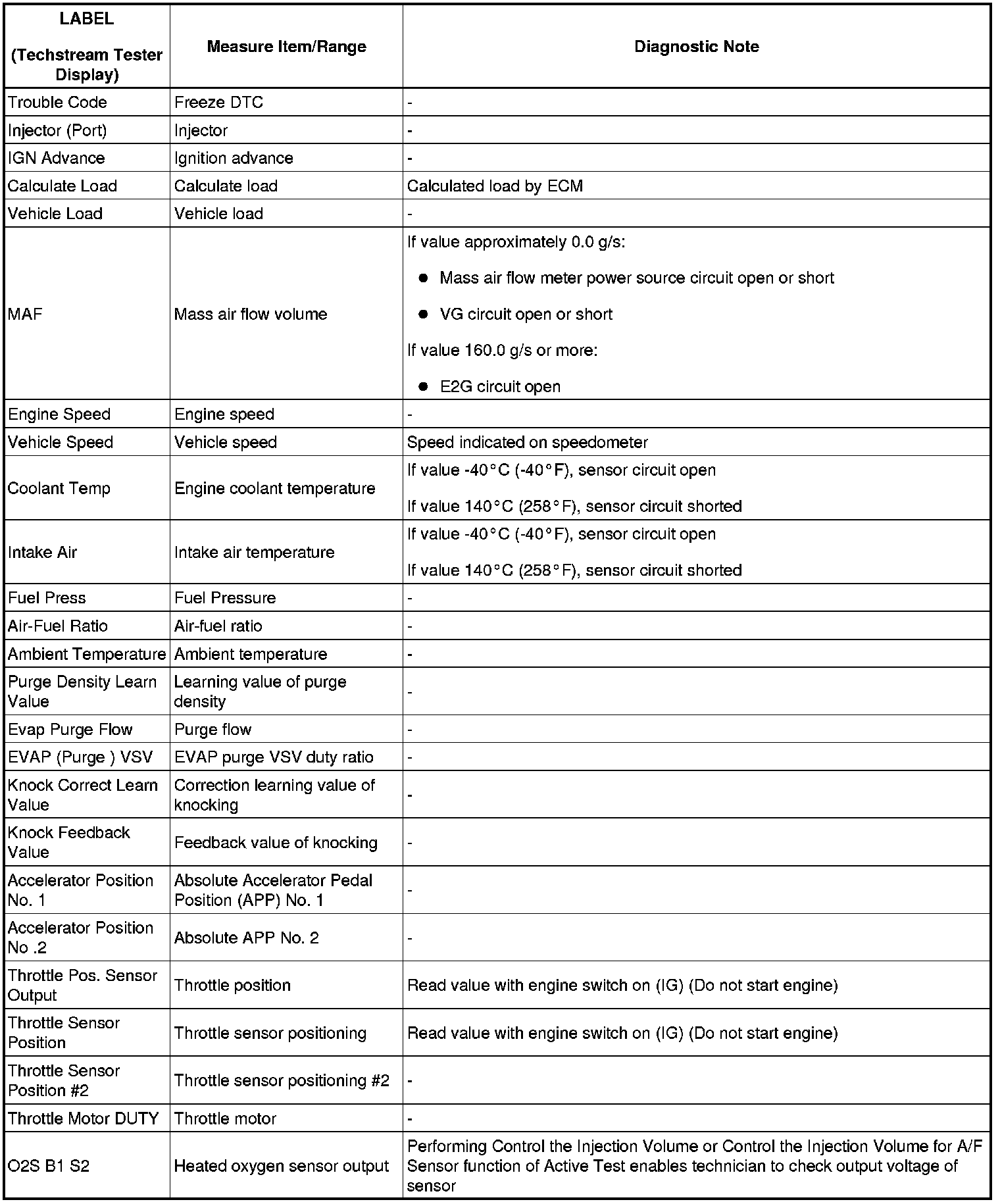 2GR-FSE ENGINE CONTROL SYSTEM: SFI SYSTEM: FREEZE FRAME DATA