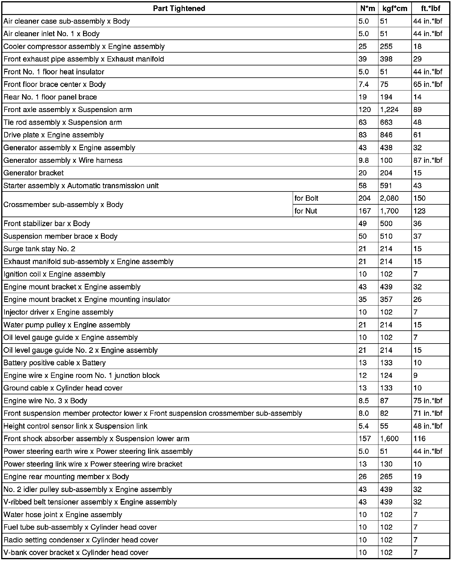 Torque Specifications