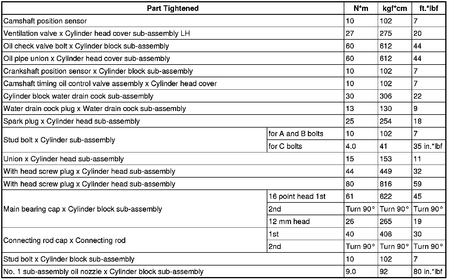 SERVICE SPECIFICATIONS: 2GR-FSE ENGINE MECHANICAL: TORQUE SPECIFICATIONS