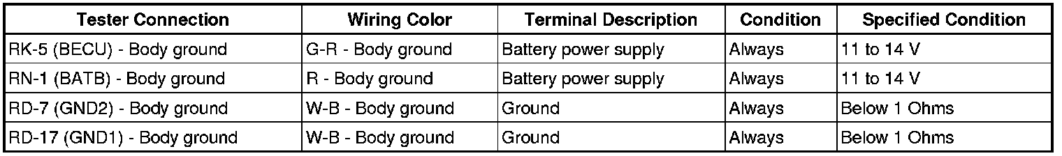 If the result is not as specified, the main body ECU RH (cowl side junction block RH) may have a malfunction.