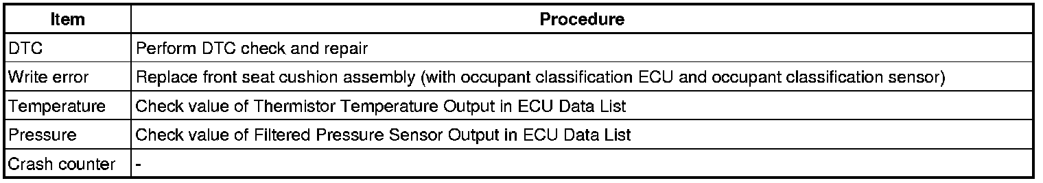 - If After Exchange is selected before the previous ECU data is stored in the Techstream, the display screen returns to CONDITION SELECT ECU: Occupant Detect.
