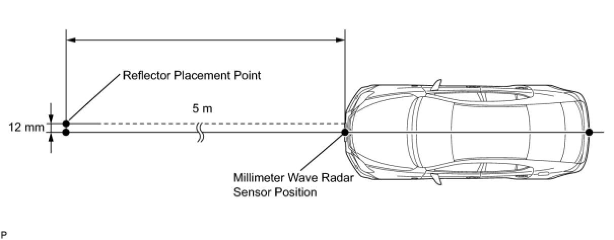 (3) Using the tape measure, measure 12 mm (0.47 in.) to the left of the 5 m (16.41 ft.) position. Place the reflector at that position.