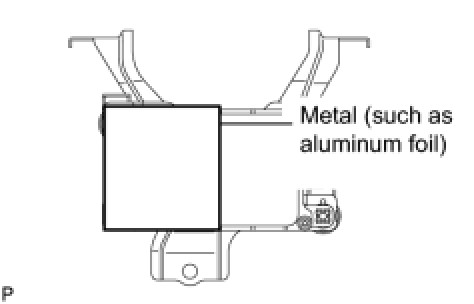 (3) Reset the radar sensor's driving learning values. Prepare a piece of metal that can block radio waves, such as aluminum foil. Cover the radar sensor's left half with the metal for 10 seconds.