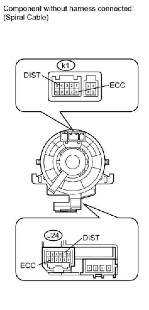 (b) Disconnect the k1 connector from the spiral cable.
