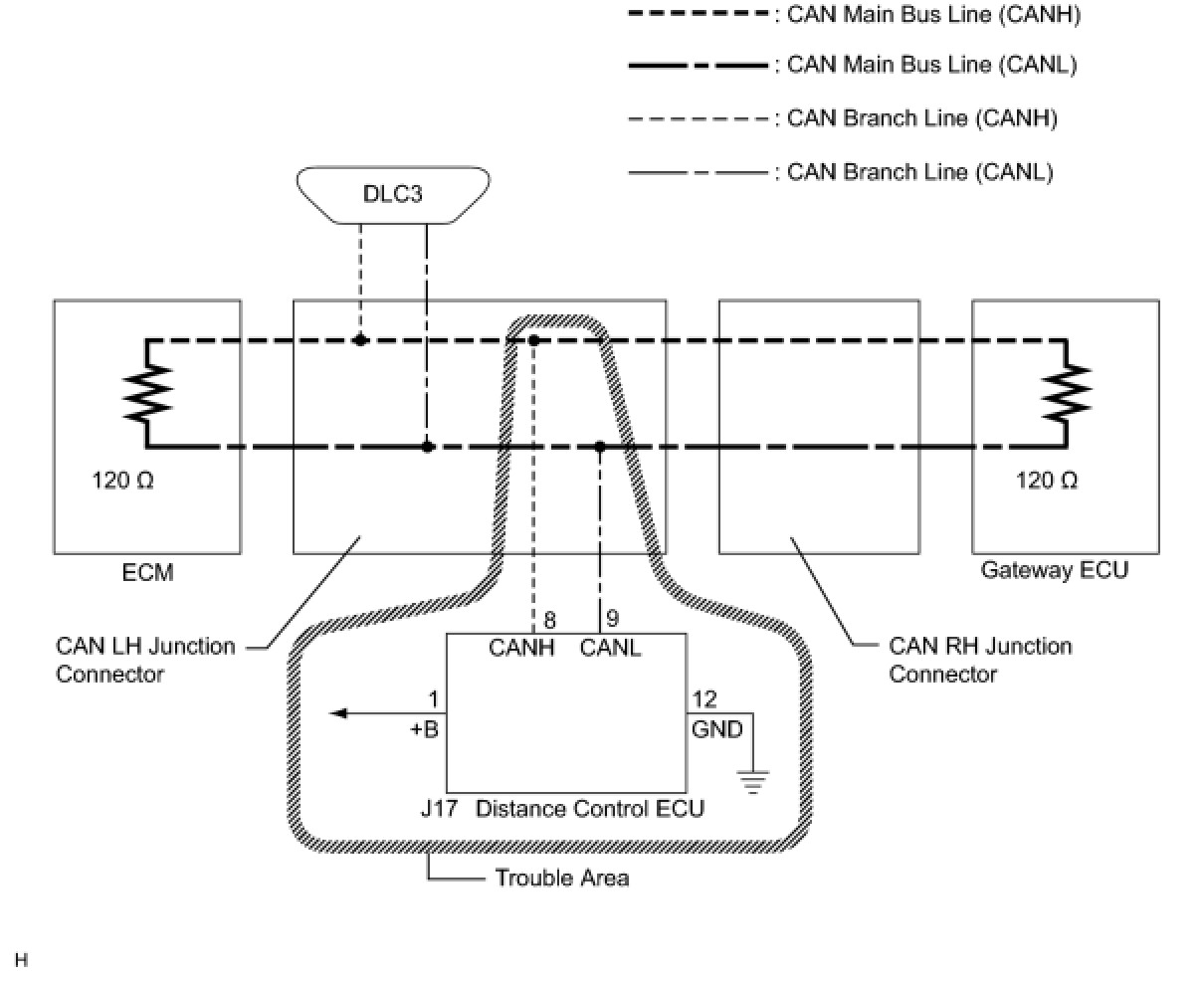 NG -- REPAIR OR REPLACE DISTANCE CONTROL ECU BRANCH WIRE OR CONNECTOR (CAN-H, CAN-L)