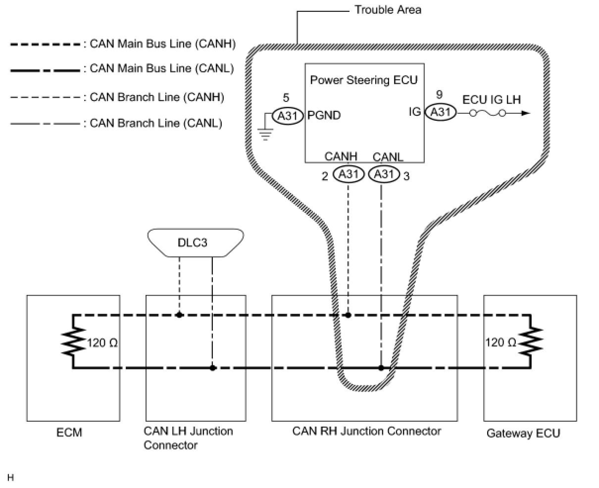 NG -- REPAIR OR REPLACE POWER STEERING ECU BRANCH WIRE OR CONNECTOR (CANH, CANL)