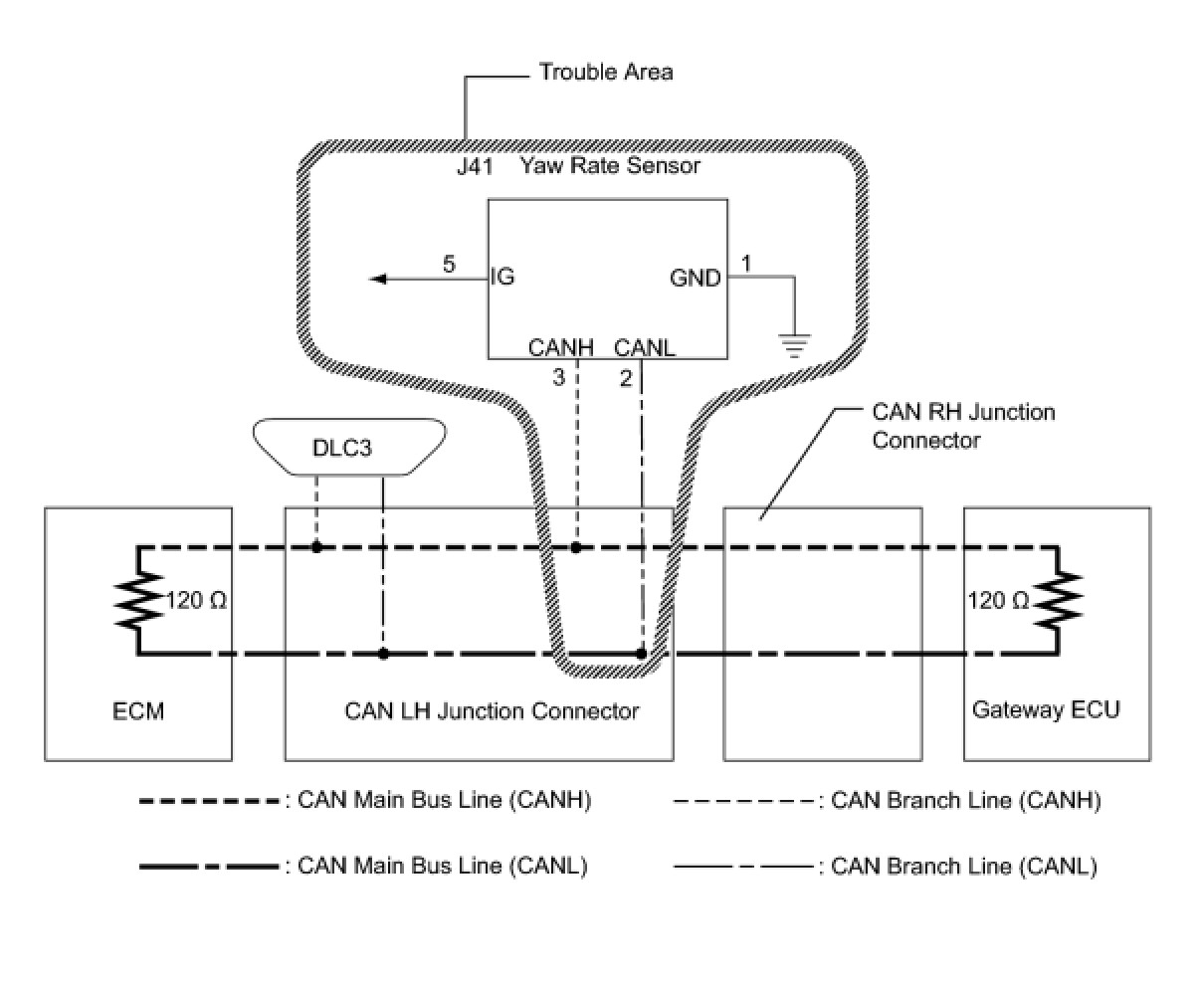 1. CHECK OPEN IN CAN BUS WIRE (YAW RATE SENSOR BRANCH LINE)