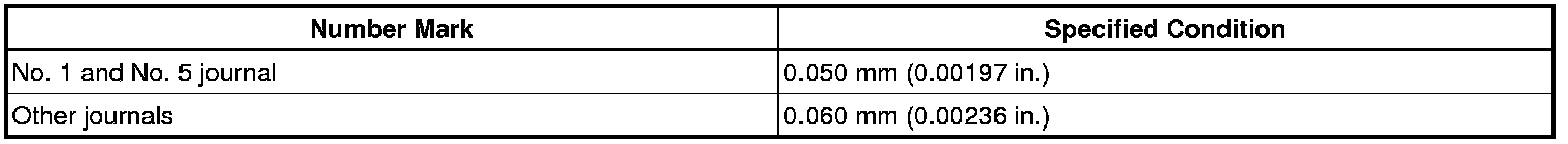 Standard Bearing Center Wall Thickness for No. 1 and No. 5 Journals: