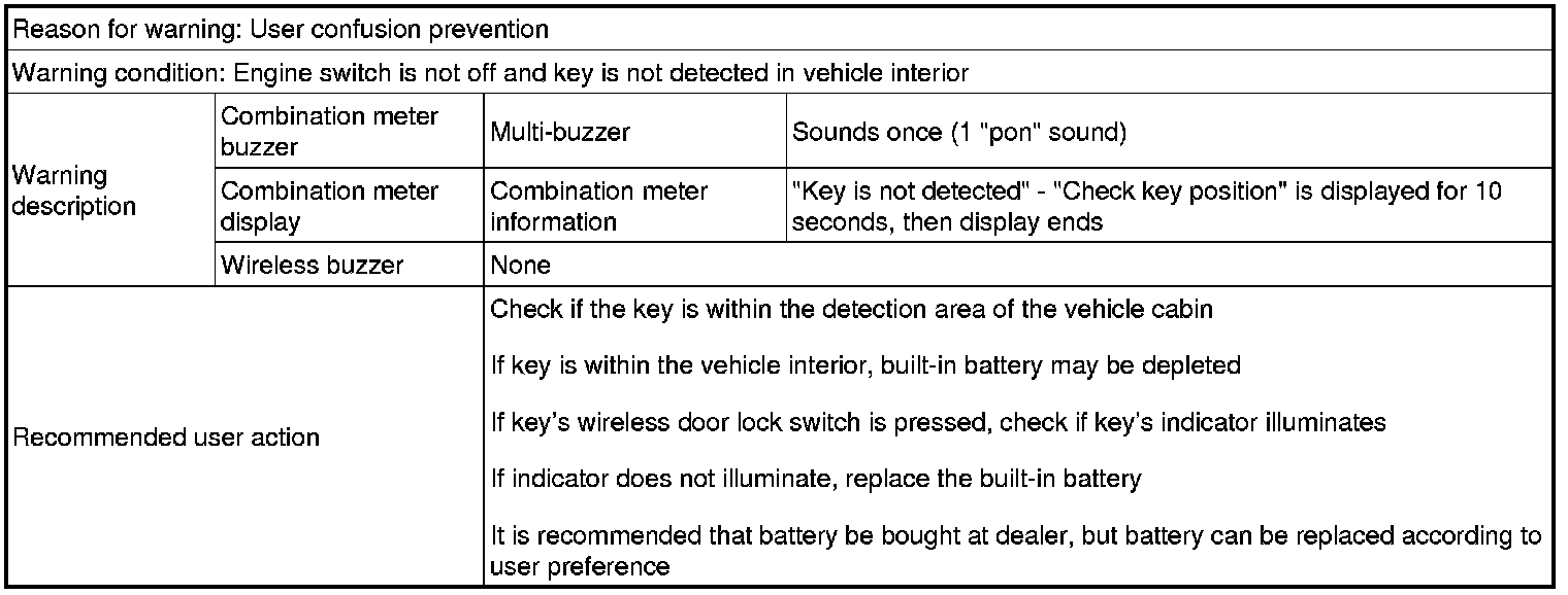 (1) With key not in vehicle cabin or key battery depleted, engine switch on (ACC or IG) operation is attempted