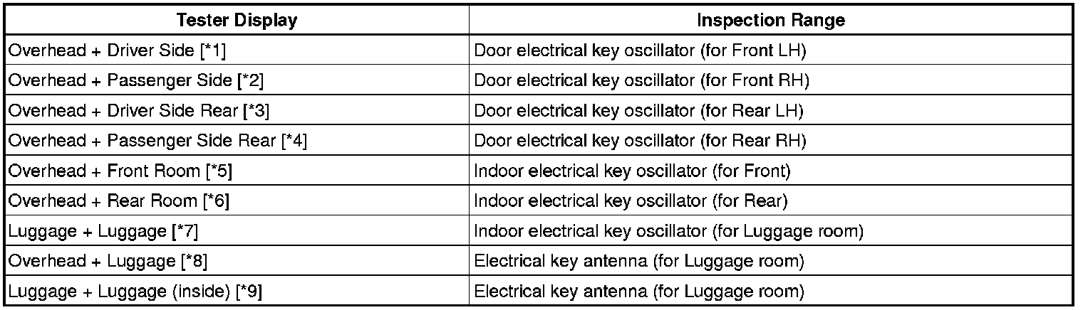- *2: Perform the same inspection above for the door electrical key oscillator (front passenger seat outside transmitter).