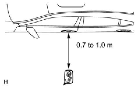 - Hold the key at the same height as the door's outside handle (0.7 to 1.0 m (2.3 to 3.3 ft.)). Pay attention to the direction of the key in the illustration.
