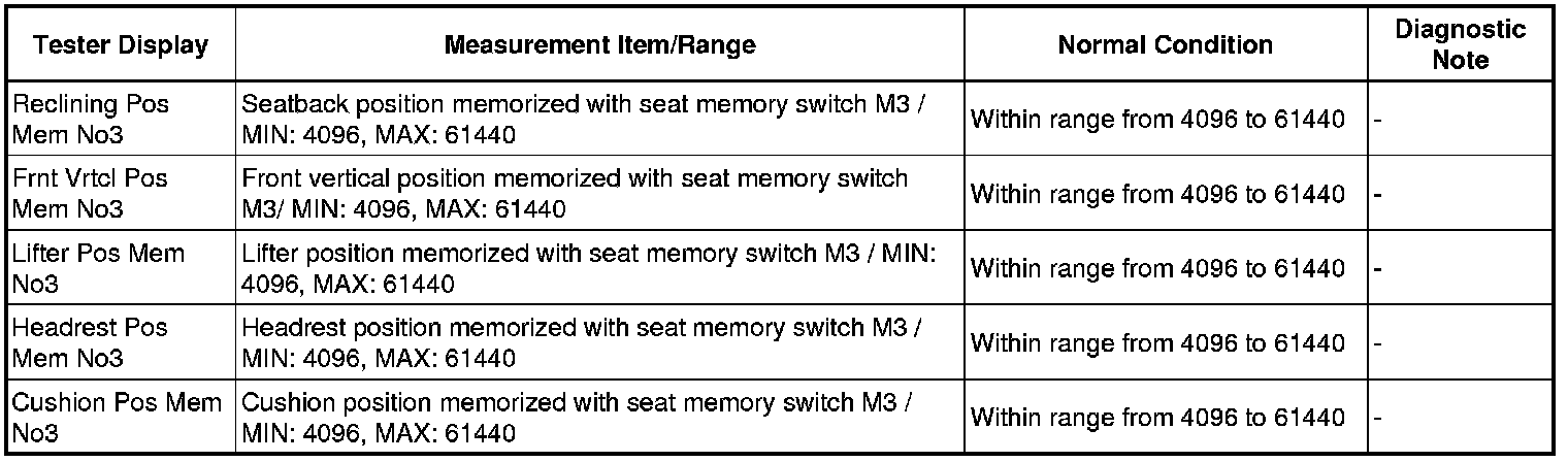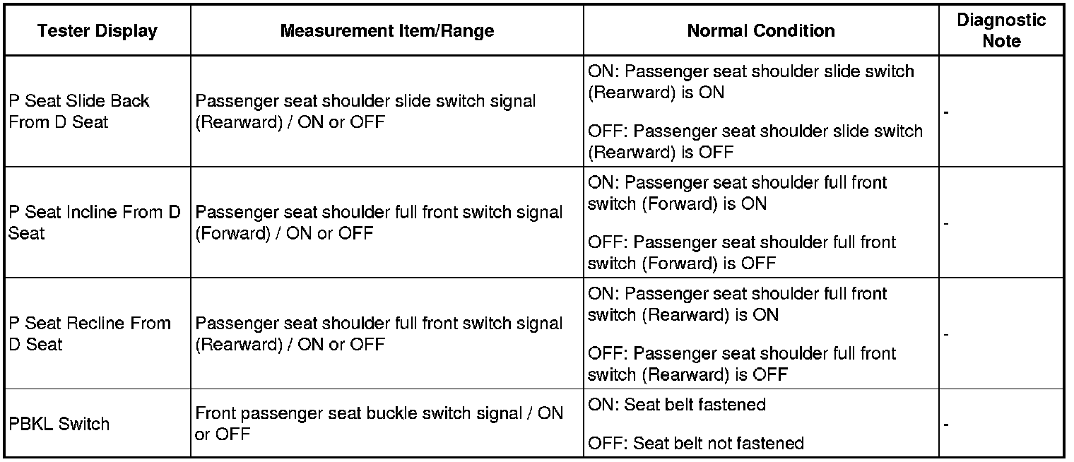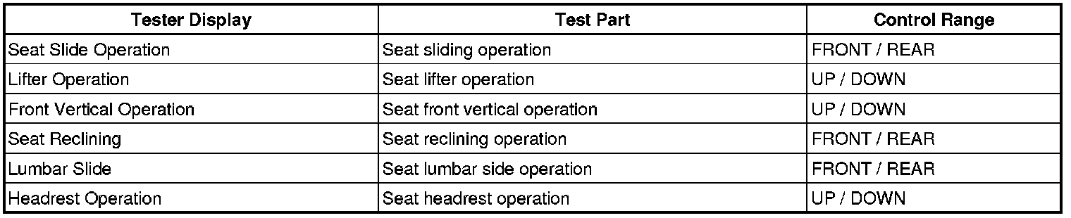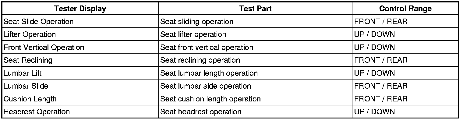 SEAT: FRONT POWER SEAT CONTROL SYSTEM: DATA LIST / ACTIVE TEST