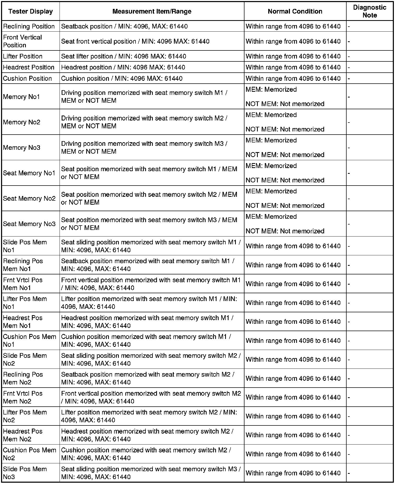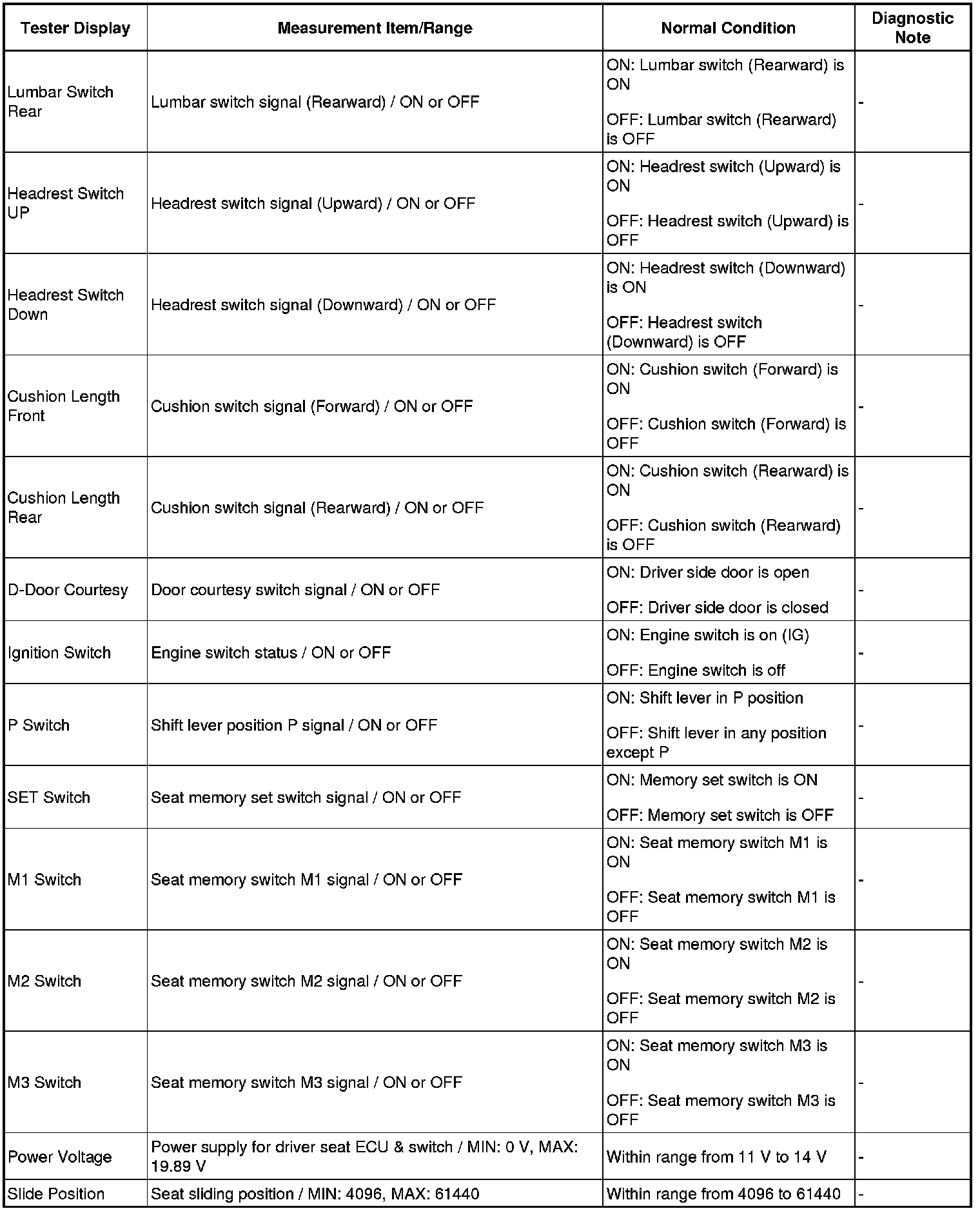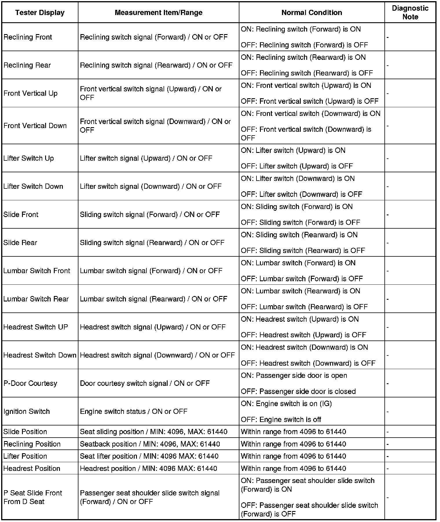 SEAT: FRONT POWER SEAT CONTROL SYSTEM: DATA LIST / ACTIVE TEST