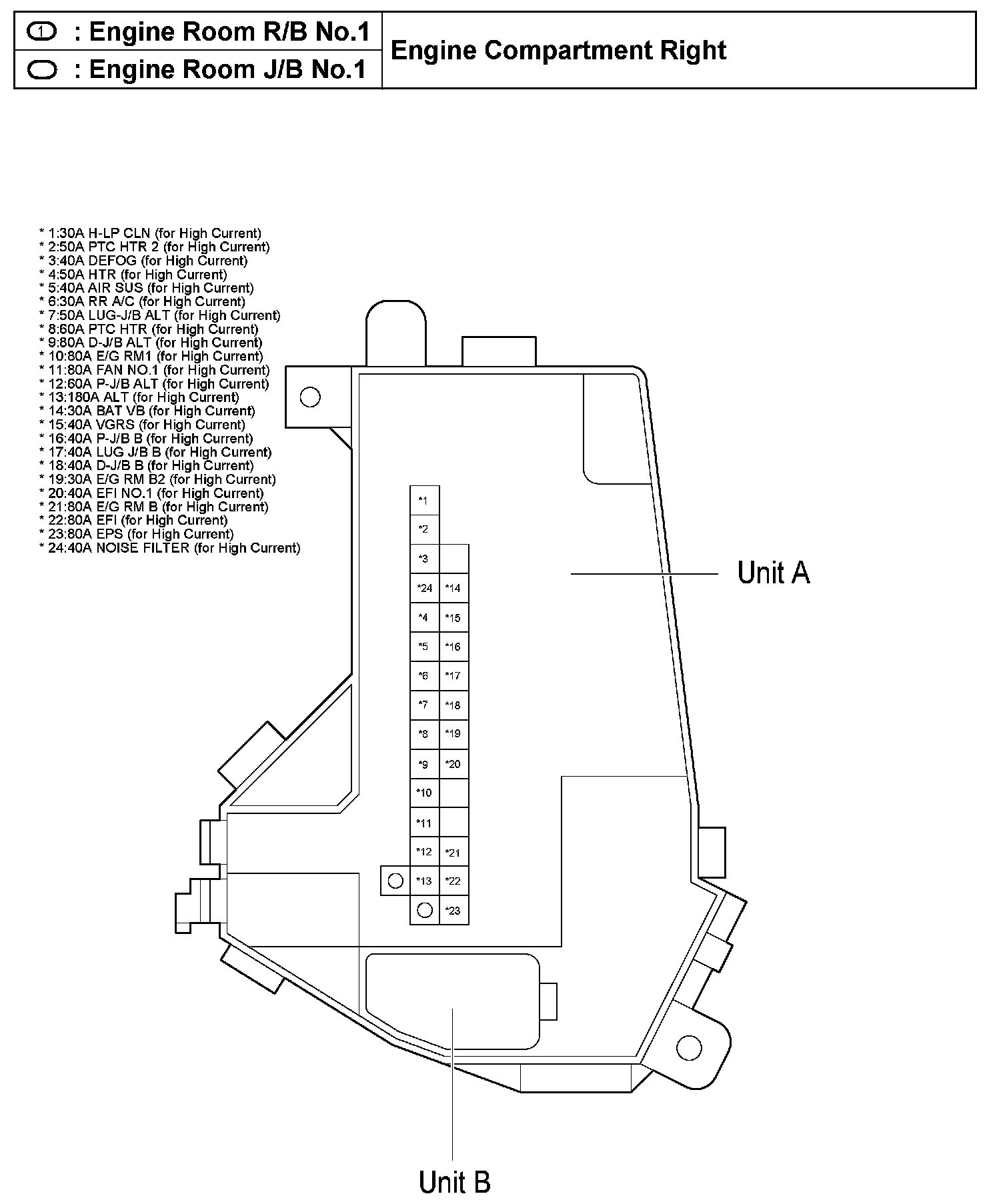 Engine Room R/B No.1, J/B No.1 - Engine Compartment Right: