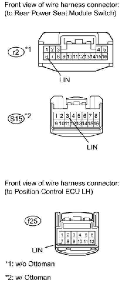 HINT: DTC U0211, U0246, U1130 and U1131 are output simultaneously when: 1) there is an open or short in the LIN communication bus between the switches on the rear seat, and 2) their LIN communication bus stops.