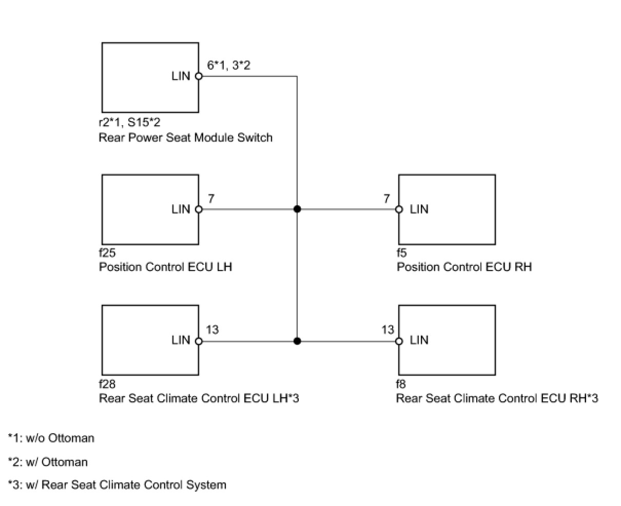 The rear power seat module switch monitors the LIN communication bus between the components related to the switches on the rear seat.