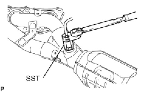 (a) Using SST, remove the air fuel ratio sensor from the exhaust manifold LH.
