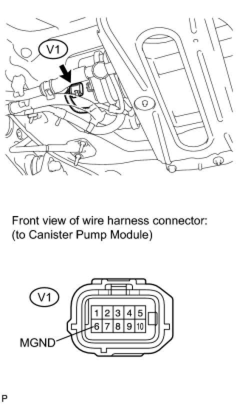 (c) Measure the resistance between MGND terminal of the canister pump module connector and the body ground.