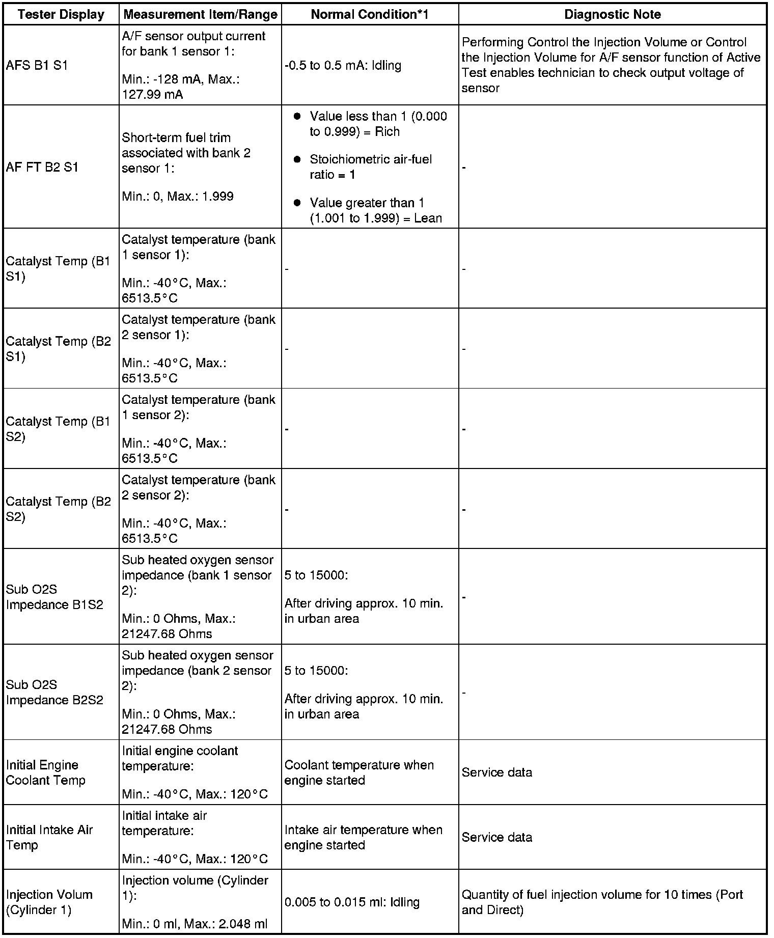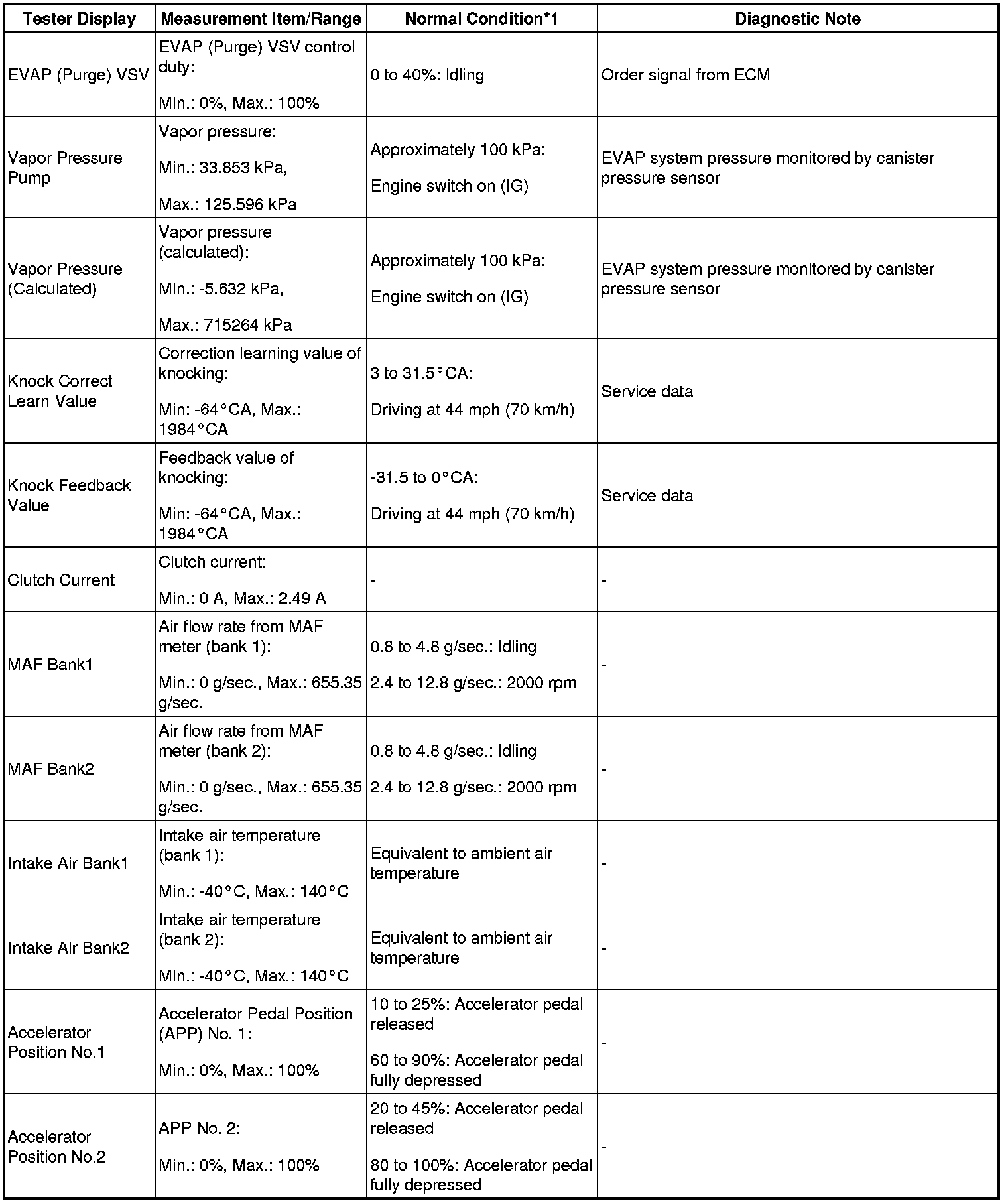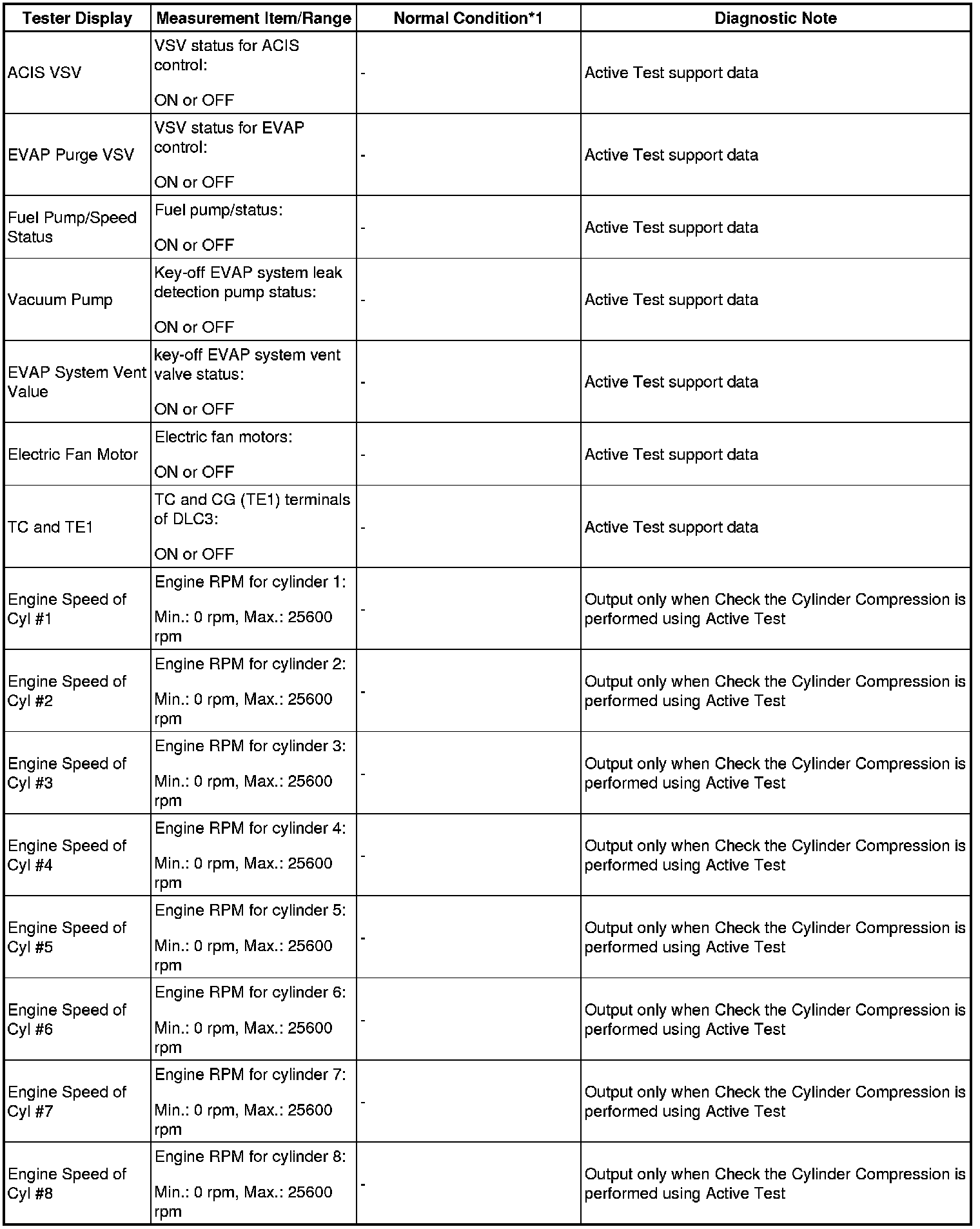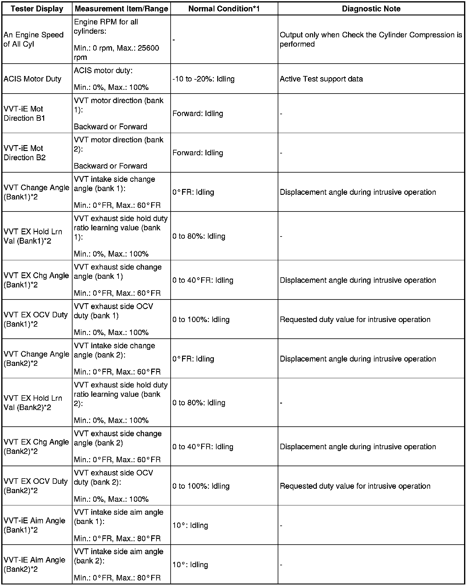 - *2: Data List values are only displayed when performing the following Active Tests: Control the VVT-iE Linear (Bank1), Control the VVT-iE Linear (Bank2), Control the Exhaust Linear (Bank1) and Control the Exhaust Linear (Bank2). For other Active Tests, the Data List value will be 0.