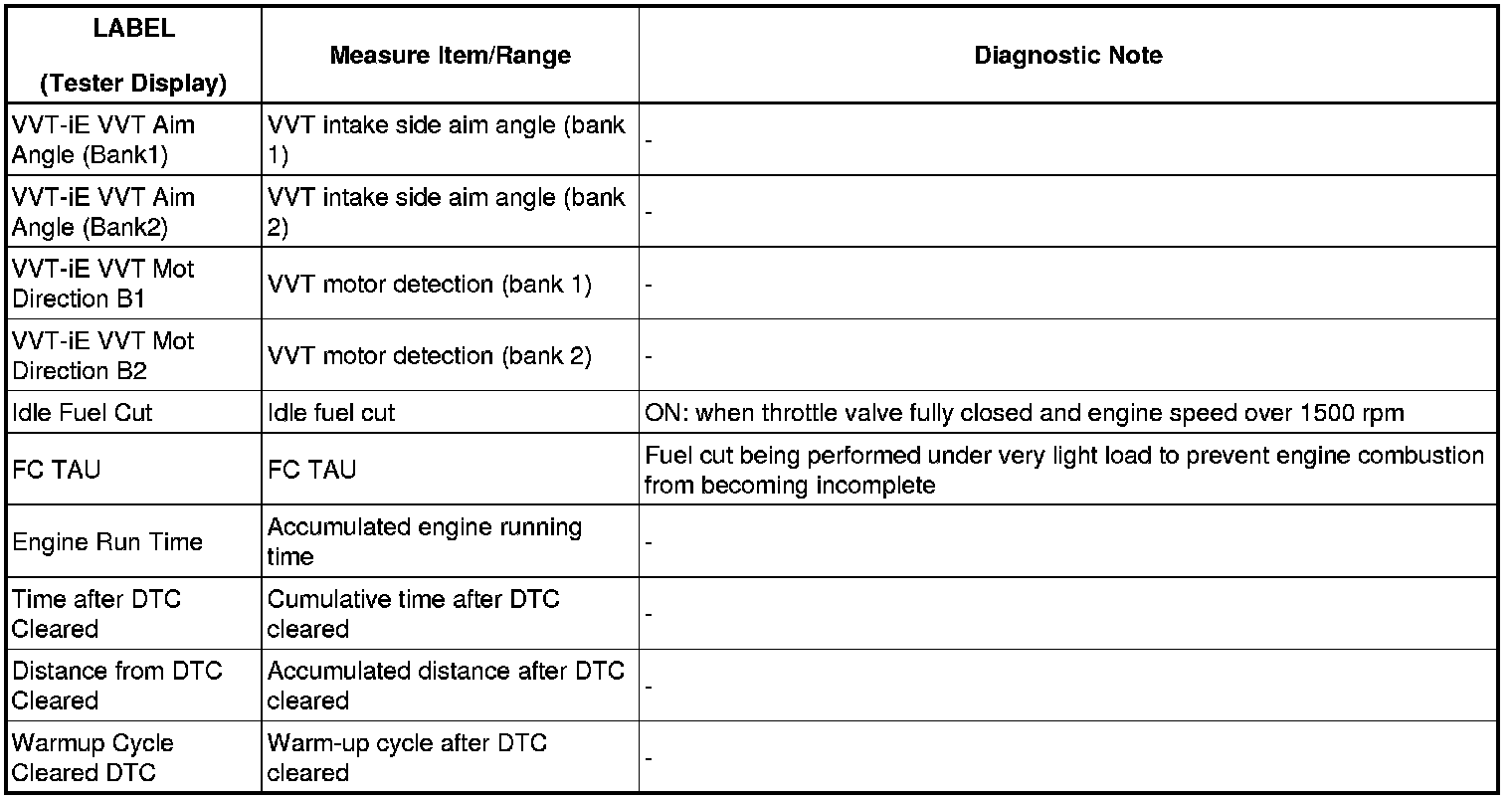 1UR-FSE ENGINE CONTROL SYSTEM: SFI SYSTEM: FREEZE FRAME DATA