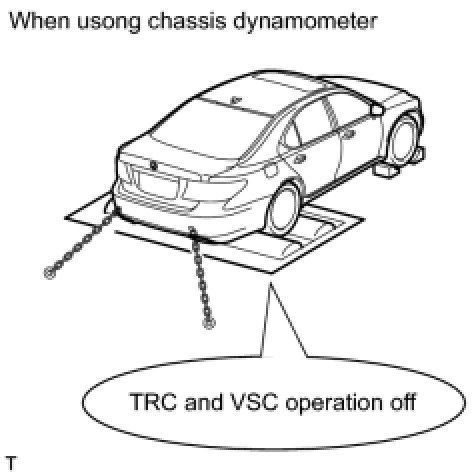 (1) When testing with a 2-wheel drum tester such as a speedometer tester, a combination tester for the speedometer and brake, a chassis dynamometer, enter maintenance mode, or switch to VSC OFF mode to turn TRAC and VSC operation off. Then enter test mode, start the engine and perform measurements.