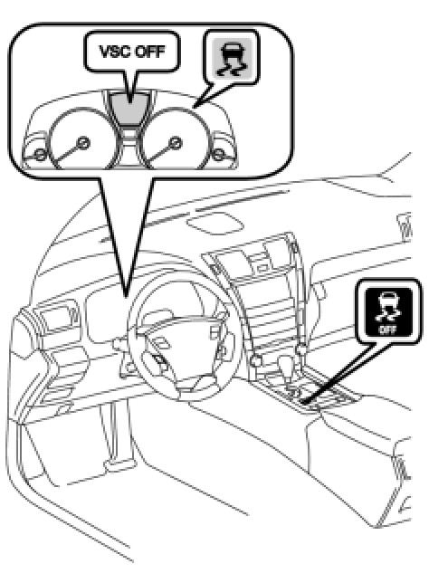 - When switching to VSC OFF mode, the VSC OFF switch must be held for 3 seconds or more with the vehicle stopped. TRAC and VSC operation must both be turned off before beginning testing.