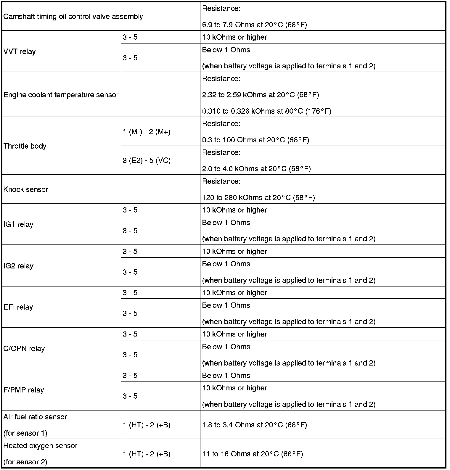 SERVICE SPECIFICATIONS: 1UR-FSE ENGINE CONTROL SYSTEM: SERVICE DATA