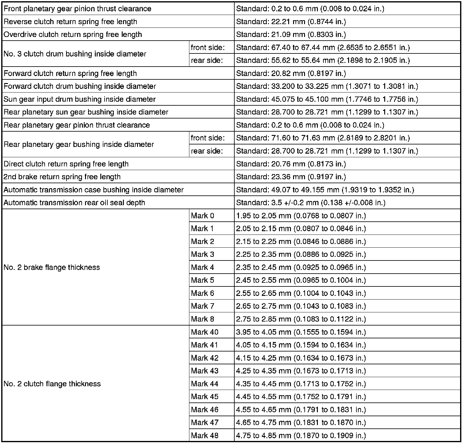 SERVICE SPECIFICATIONS: AA80E AUTOMATIC TRANSMISSION: SERVICE DATA