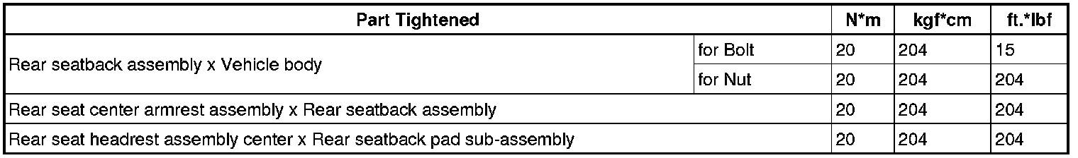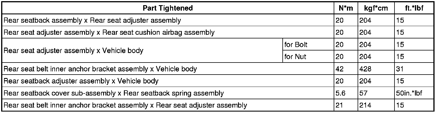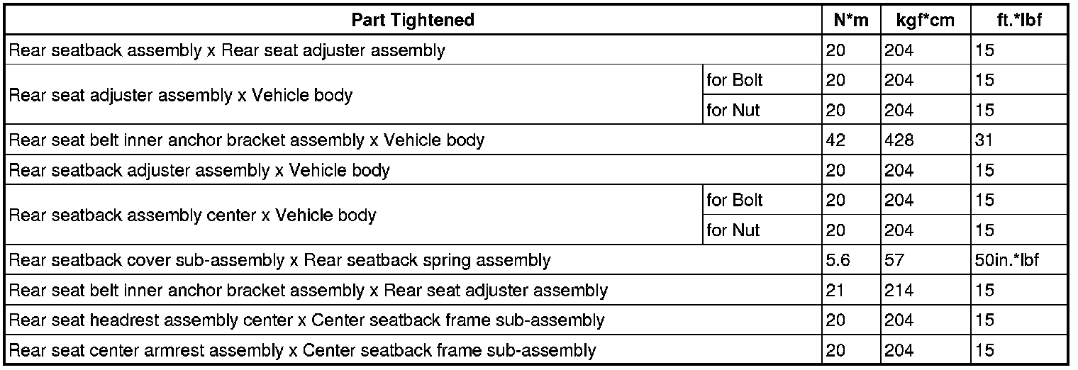 SERVICE SPECIFICATIONS: SEAT: TORQUE SPECIFICATIONS