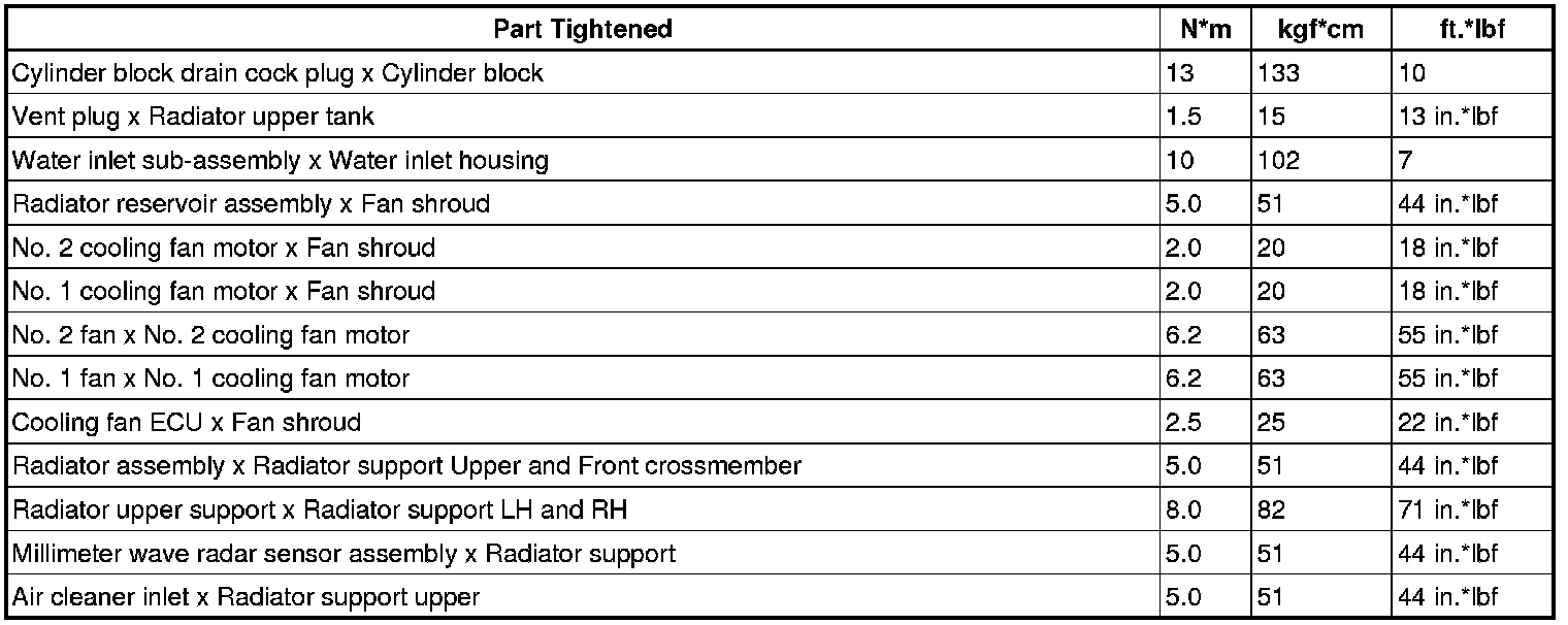 SERVICE SPECIFICATIONS: 1UR-FSE COOLING: TORQUE SPECIFICATIONS