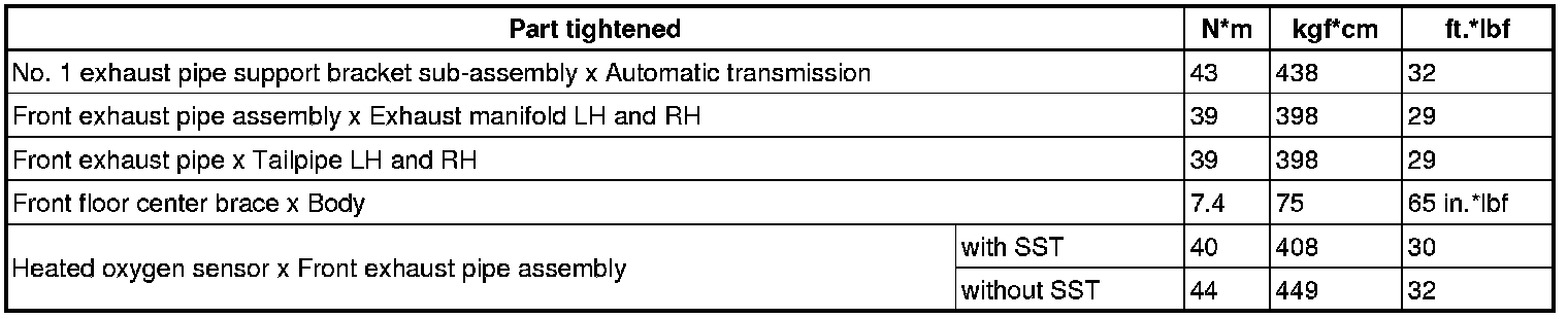 SERVICE SPECIFICATIONS: 1UR-FSE EXHAUST: TORQUE SPECIFICATIONS