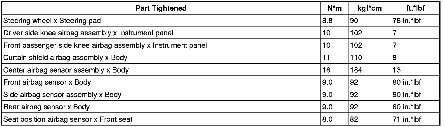 SERVICE SPECIFICATIONS: SUPPLEMENTAL RESTRAINT SYSTEM: TORQUE SPECIFICATIONS