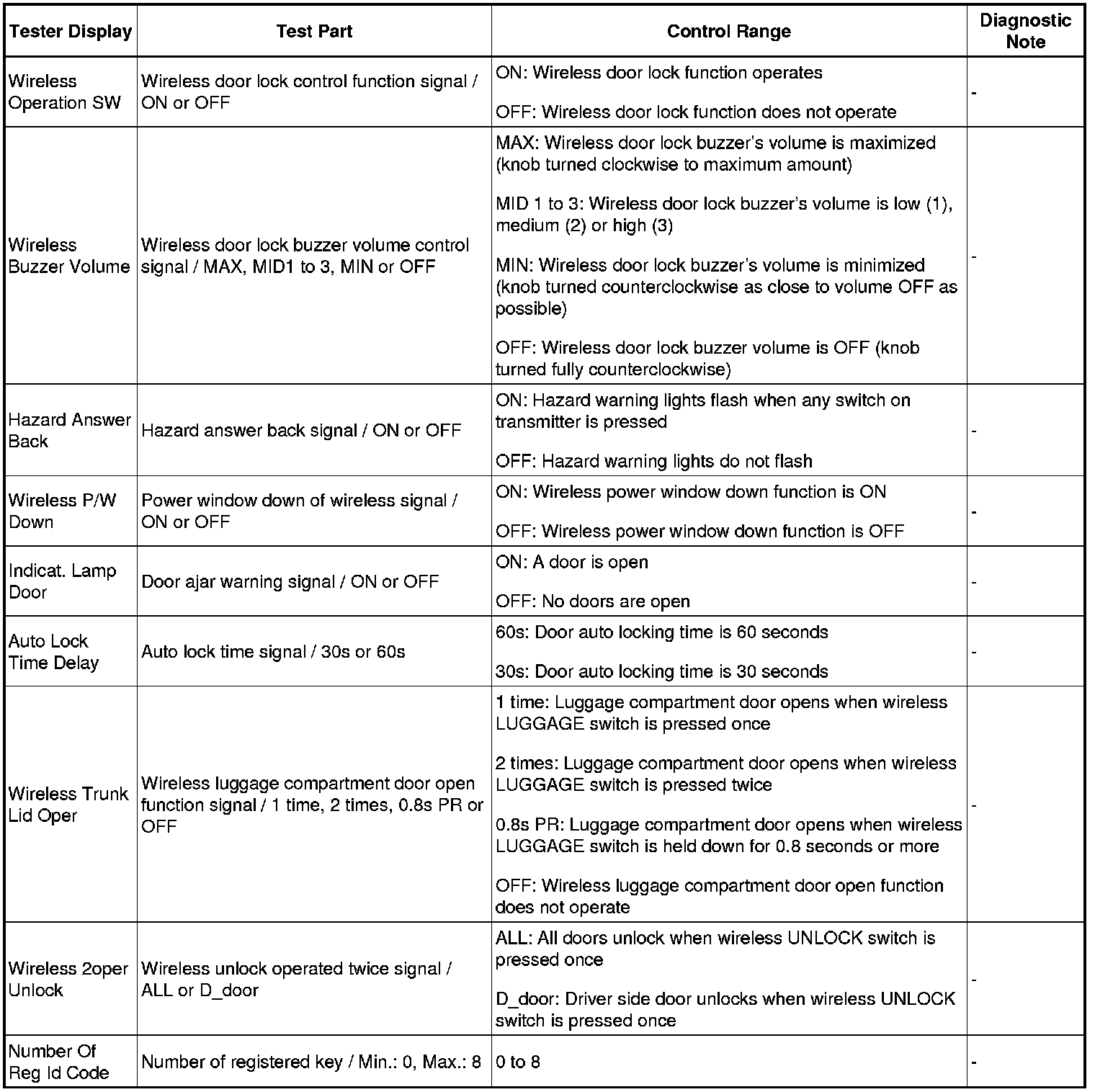 DOOR LOCK: WIRELESS DOOR LOCK CONTROL SYSTEM: DATA LIST / ACTIVE TEST