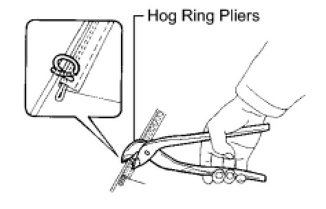 (a) Using hog ring pliers, install the seatback cover to the seatback pad with new hog rings.