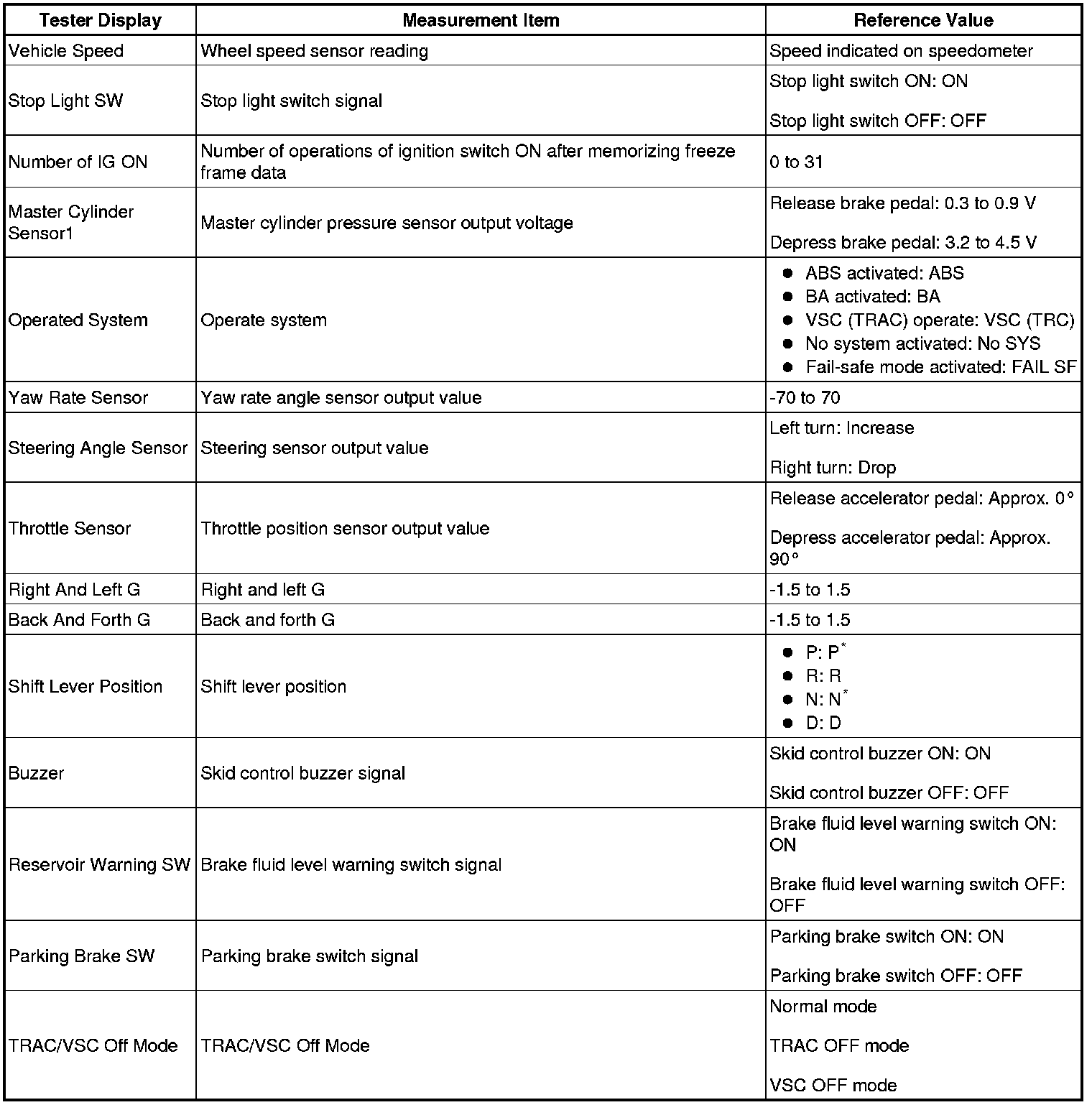 - When a DTC is detected or the ABS operates, the skid control ECU stores the current vehicle (sensor) state as freeze frame data.