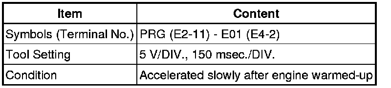 HINT: In cases where the purge VSV can be used to purge the EVAP, the waveform will not be displayed as shown in the illustration. In the Data List, the item Purge VSV shows the duty ratio of voltage flowing to the purge valve.