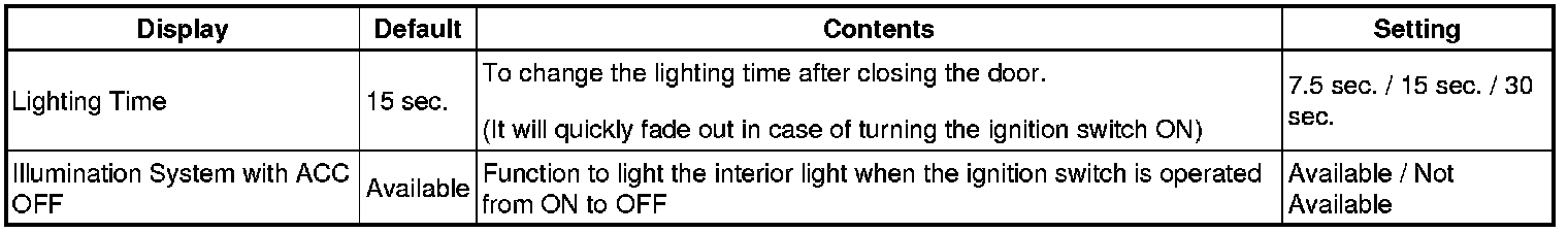 **2: Delay time until the headlight is turned on when it suddenly gets dark.