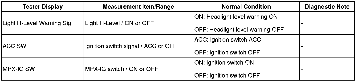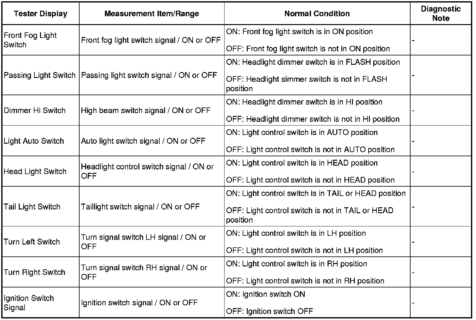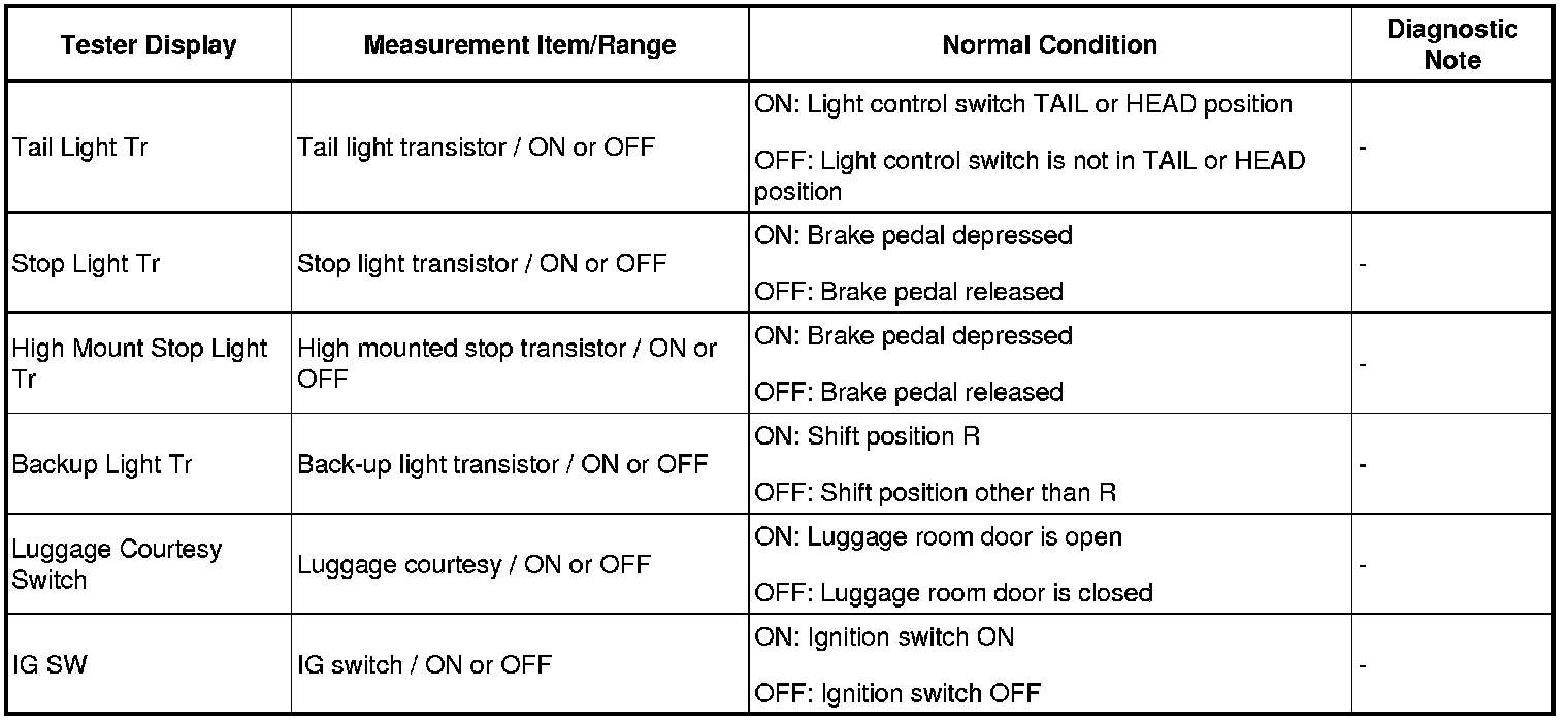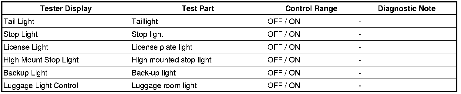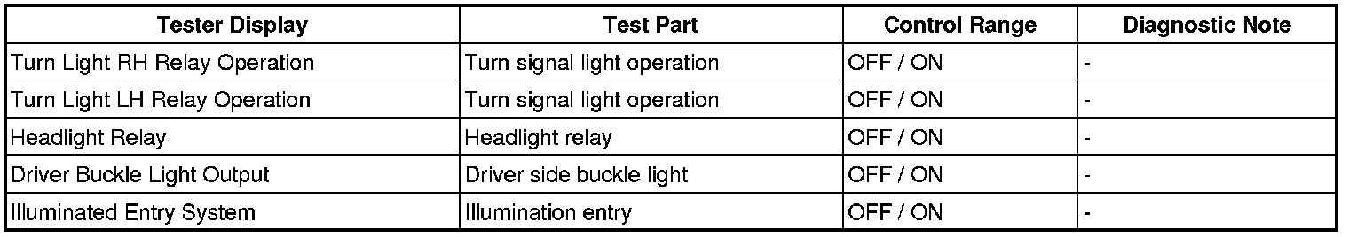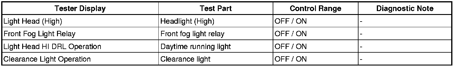 LIGHTING SYSTEM: DATA LIST / ACTIVE TEST