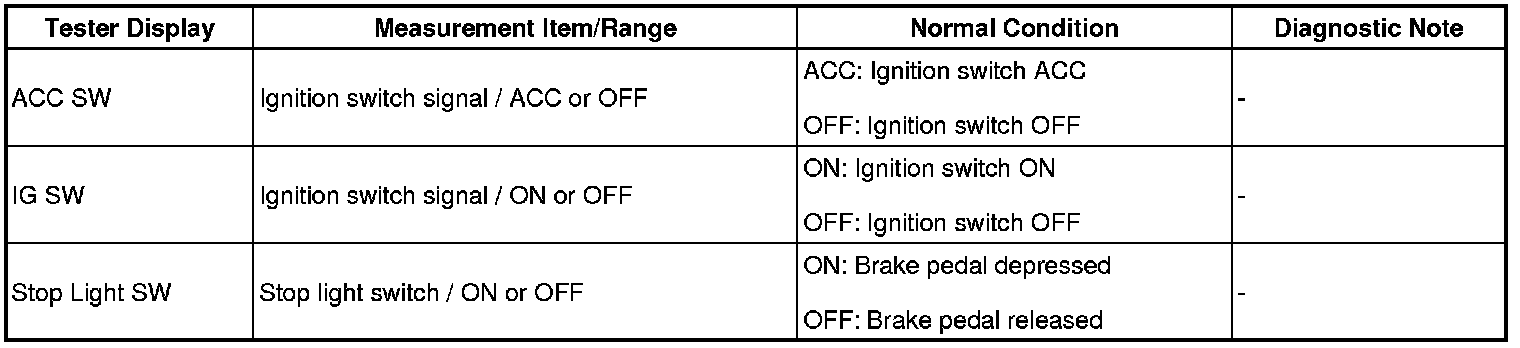 HINT: Using the Techstream's DATA LIST allows switch, actuator and other item values to be read without removing any parts. Reading the DATA LIST early in troubleshooting is one way to save time.