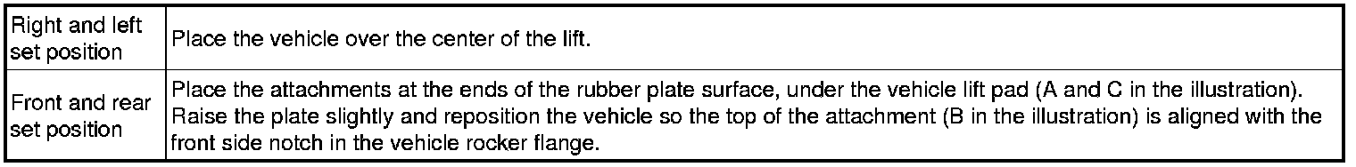 (d) When using the lift, its center should be as close to the vehicle's center of gravity as possible (length of "L" in the illustration should be as short as possible).