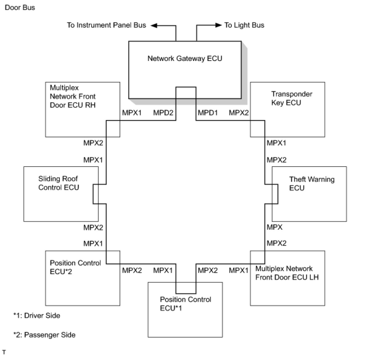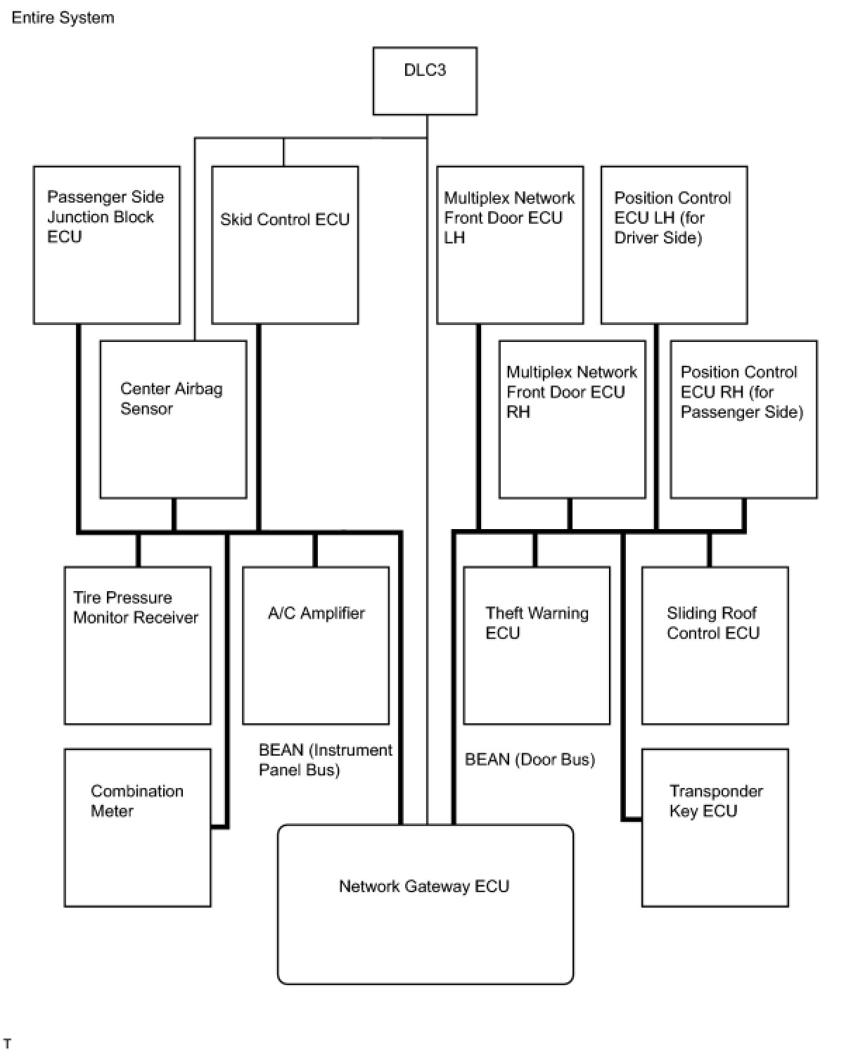 (1) The BEAN uses a ring and bus style of network to connect ECUs. This style of communication method is called a daisy chain. In a daisy chain, communication can be maintained even if the network has an open circuit.